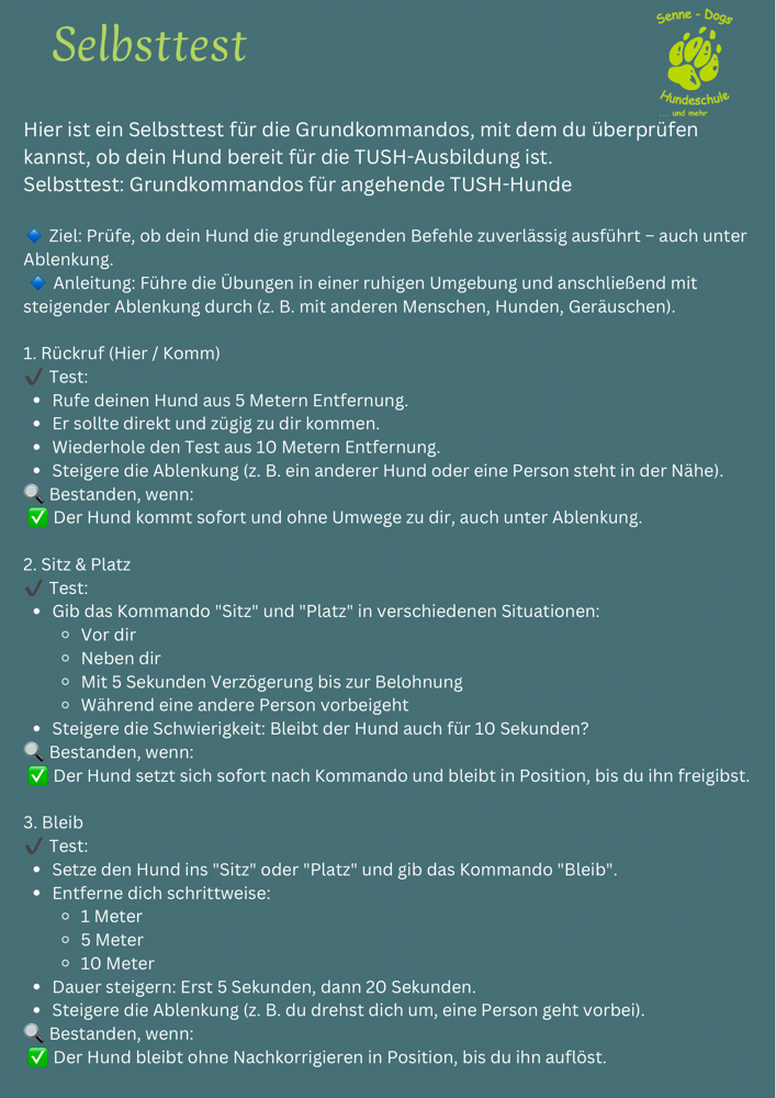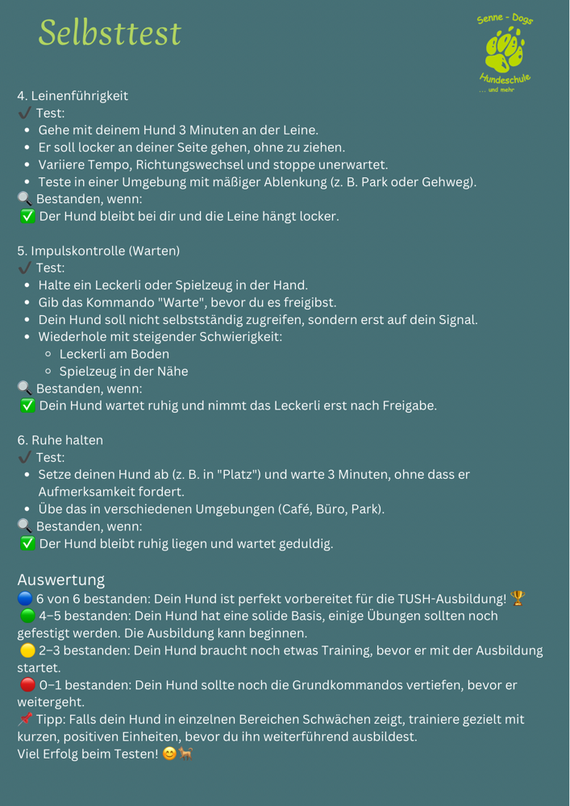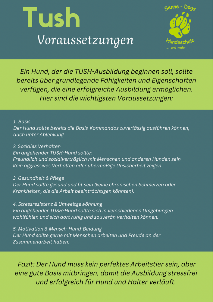 Für den Einstieg in die TUSH-Ausbildung sollte dein Hund frühestens 6 Monate alt sein.